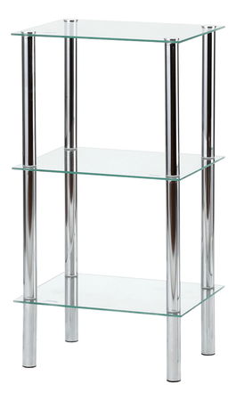 Elegantní regál na odkládání drobností, či dekorací. Je vhodný do moderně zařízených obývacích pokojů nebo pracoven. Konstrukce regálu je chromová a odkládací poličky jsou z čirého tvrzeného skla. Regál má tři odkládací poličky.