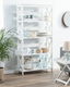 Dodejte svému interiéru industriální nádech s touto elegantní knihovnou. Čisté, hladké linie, MDF s bílým povrchem a geometrický design – tento kousek je nezbytností pro každého milovníka interiérového designu. Robustní industriální rám a široké pevné police poskytují dostatek úložného prostoru pro uspořádání vašich předmětů, vystavení obrázků nebo drobností a vašich oblíbených knih. Tato všestranná čtyřpatrová knihovna je ideálním nábytkem, který dokonale zapadne do vašeho obývacího pokoje, ložnice, předsíně, kuchyně nebo všude tam, kde ji budete potřebovat.