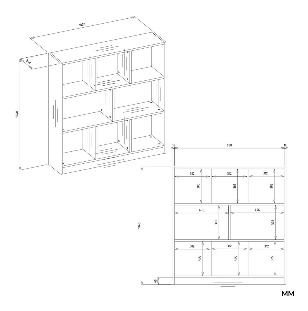 100 × 104 × 24 cm