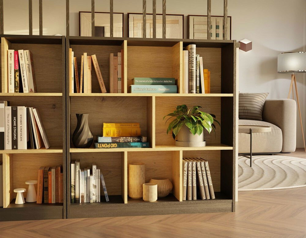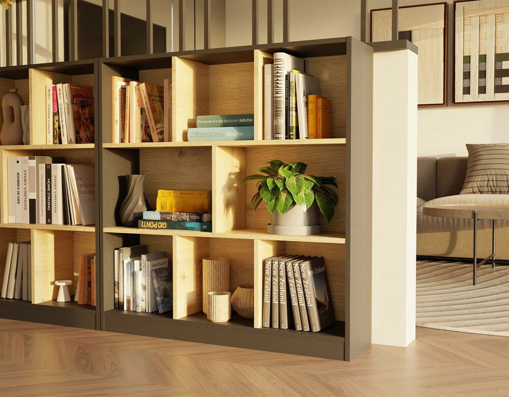 ZobrazitRegál Fragil 2 je moderní a minimalistický nábytek, který skvěle zapadne do škandinávského stylu. S otevřenou konstrukcí a osmičkou praktických polic nabízí ideální místo pro uskladnění knih, dekorací či různých doplňků. Jeho kompaktní rozměry jsou vhodné i do menších prostor, jako jsou obývací pokoje, ložnice nebo domácí kanceláře. Barva antracit v kombinaci s teplým dubem artisan dodává regálu elegantní a útulný vzhled, přičemž laminovaná deska zaručuje odolnost vůči poškrábání a snadnou údržbu. Tento regál je skvělým řešením pro každý moderní interiér.