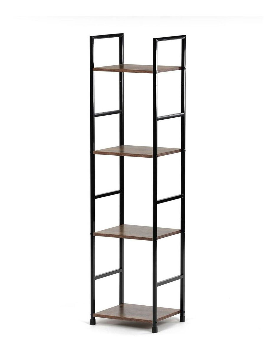 ZobrazitPředstavujeme vám praktický čtyřpatrový regál v industriálním stylu. Tento elegantní kousek v hnědé barvě kombinuje pevný kovový rám s prkny z MDF s dekorem starého dřeva. Jeho kompaktní rozměry umožňují snadné umístění do každého obývacího pokoje, kde poskytne dostatek prostoru pro vaše dekorace, knihy či další drobnosti.