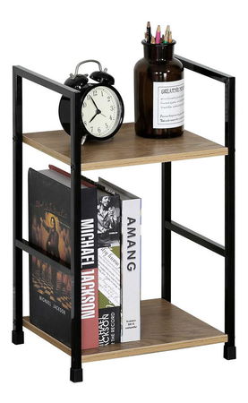 ZobrazitOdlehčený policový regál. Kostra vyrobená z kovových hranatých profilů černé barvy. Na police je použita MDF deska s povrchovou úpravou 3D fólie v textuře dubu. Balení obsahuje sadu umožňující připevnění ke stěně.