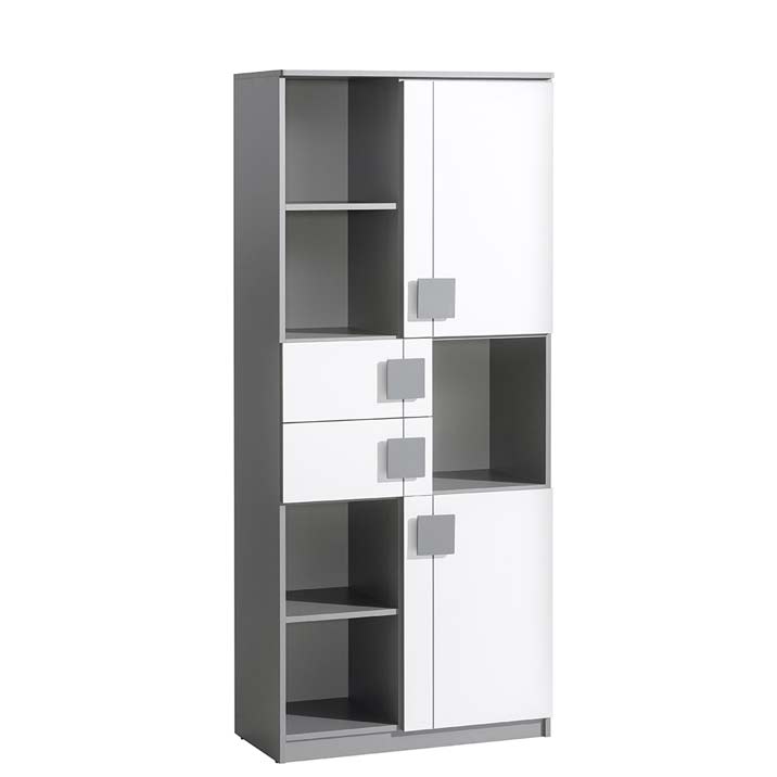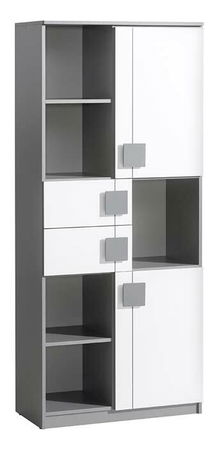 Kam uložit knihy, sbírky komiksů či dekorativní předměty? Tento regál Vám poskytne úložný prostor na všechny drobnosti. Má police a zásuvky v levé a dvoje dvířka v pravé části. Stylový regál má tenké ozdobné svislé a vodorovné linie. Zásuvky a dvířka mají velké čtvercové úchyty. Je výborným doplňkem dětských a studentských pokojů. A o pořádek bude hned postaráno!
