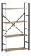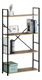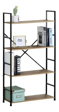Odlehčený policový regál. Kostra vyrobená z kovových hranatých profilů černé barvy. Na police je použita MDF deska s povrchovou úpravou 3D fólie v textuře dubu. Pro lepší stabilitu je na zadní straně kovová výztuha ve tvaru písmene X. Balení obsahuje sadu umožňující připevnění ke stěně.