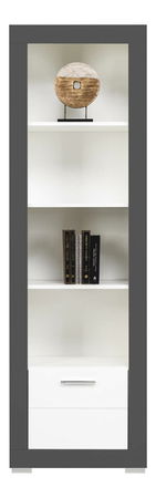 Tvarově i barevně čistý nábytek z modelové řady Gray dává místnosti eleganci. Je možné ho kombinovat s pestrými barvami stěn a sedací soupravy. Sektor obsahuje množství prvků, díky kterým si poskládáte sestavu podle svých potřeb a představ. Bílá matná barva je vhodně doplněna o grafitovou barvu. Elegantní podlouhlé úchyty doplňují celkový moderní design nábytku. Do vitrín je možné si přiobjednat efektní LED osvětlení modré barvy, které zvýrazní předměty umístěny ve vitrínách a zároveň po západu slunce navodí příjemnou a uklidňující atmosféru v místnosti.