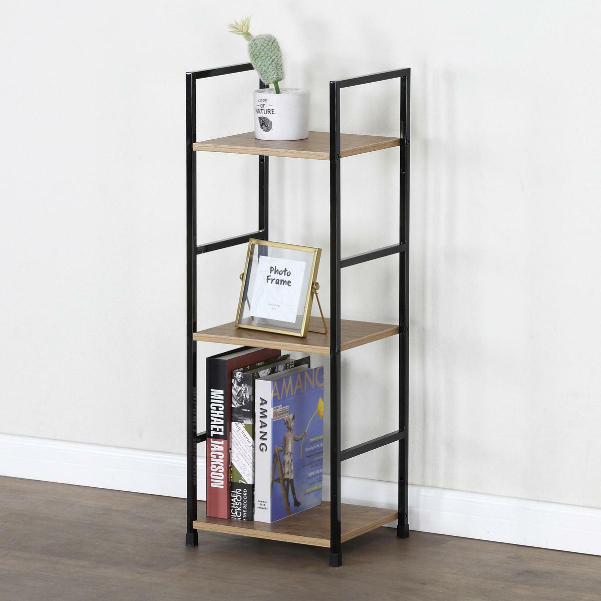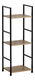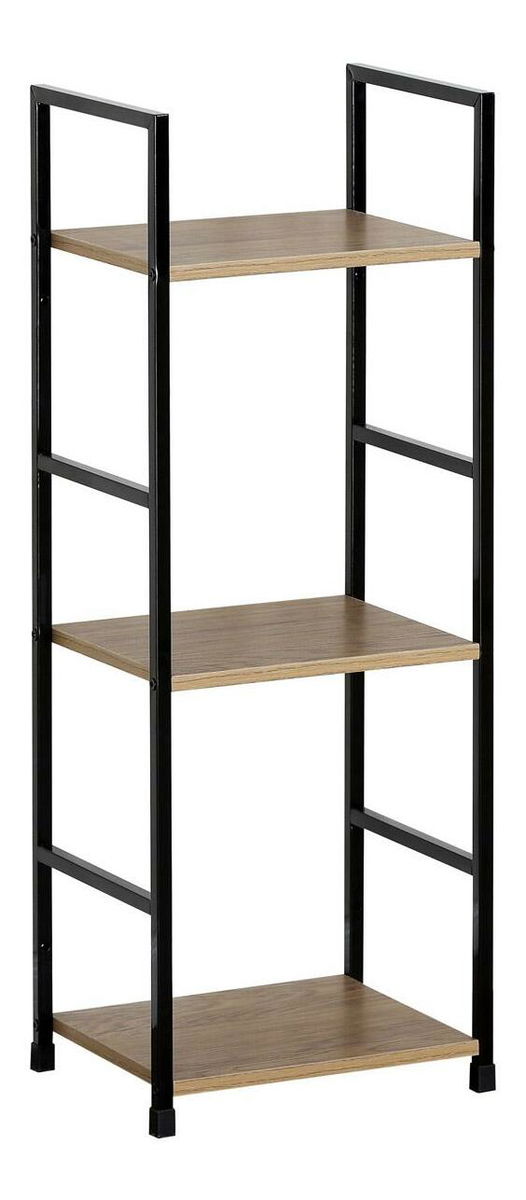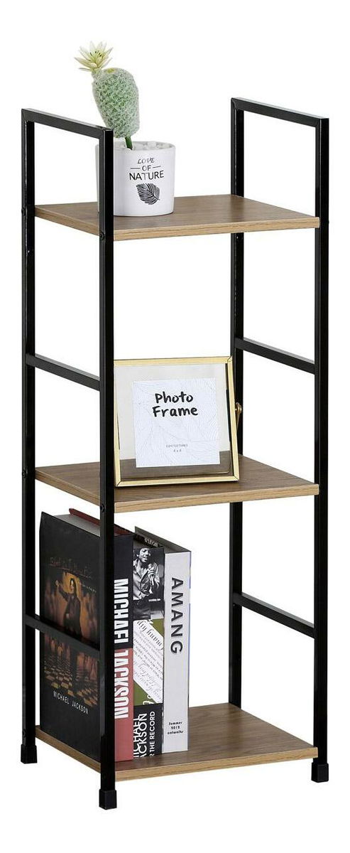 ZobrazitOdlehčený policový regál. Kostra vyrobená z kovových hranatých profilů černé barvy. Na police je použita MDF deska s povrchovou úpravou 3D fólie v textuře dubu. Balení obsahuje sadu umožňující připevnění ke stěně.