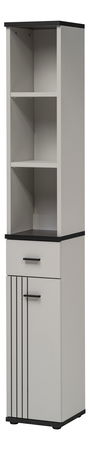 Regál Hagon v odstínu kašmíru s černými prvky a dekorativním potiskem černých pruhů nabízí praktickou kombinaci otevřeného a uzavřeného úložného prostoru v jednom kompaktním celku. V horní části najdete otevřené přihrádky s policemi, ideální pro vystavení dekorací, knih nebo každodenních doplňků. Pod nimi se nachází zásuvka, vhodná pro drobnosti, které chcete mít po ruce, ale ne na očích. Ve spodní části regálu jsou dvířka, za kterými se skrývají další 2 police – ideální pro ukládání věcí, které vyžadují více diskrétnosti nebo pořádku. Díky elegantnímu provedení a praktickému členění je tento regál ideálním doplňkem do předsíně, pracovny i obývacího pokoje.