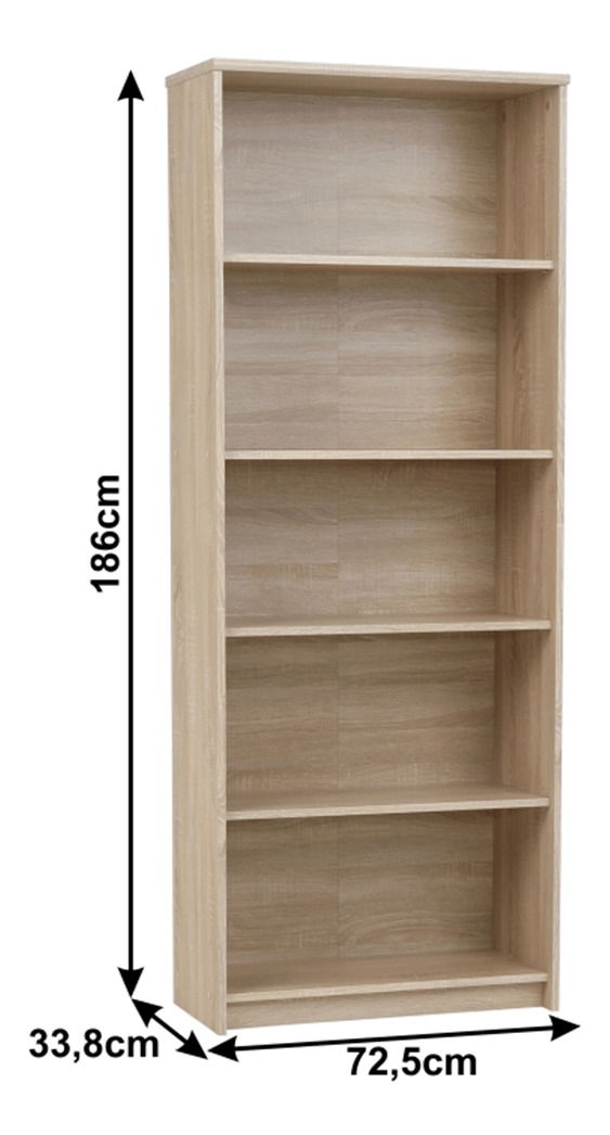 Tento minimalistický vysoký regál se hodí do moderní kanceláře, či pracovny. Umístit jej můžete i do dětského pokoje, jednoduše tam, kde potřebujete otevřený úložný prostor na šanony, knihy nebo krabice. Úložný prostor tvoří čtyři police, čímž vznikne až pět odkládacích ploch. Regál je dodán se spodním soklem.