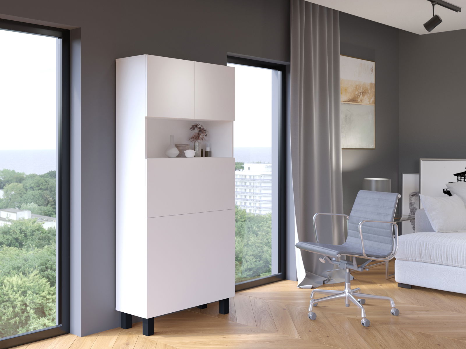 ZobrazitRegál Holli (bílá matná) o výšce 87 cm, šířce 150 cm a hloubce 42 cm je mimořádně praktický a univerzální nábytek pro domácí kanceláře. Moderní design HOLLI zapadá do trendů „home office“ a kombinuje psací stůl, knihovnu a bar na malém prostoru. HOLLI obsahuje rozkládací kancelářskou část pro práci i výklopnou pomocnou poličku. Uzavřená část obsahuje rozsáhlý systém polic, které vám pomáhají organizovat váš pracovní prostor dokonale. Díky Holli si můžete dokonale naplánovat ateliér, kancelář nebo pokoj pro mládež.
