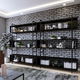 Regál - Irek (Černá) je vysoký 180 cm, široký 280 cm a hluboký 34 cm. Tento produkt je ideální pro uspořádání a organizaci vašich věcí. místa pro uložení knih, datových nosičů, dekorací a dalších předmětů. do obývacího pokoje, kanceláře nebo ložnice, tento regál dodává vkusný a praktický dotek do jakéhokoli interiéru.