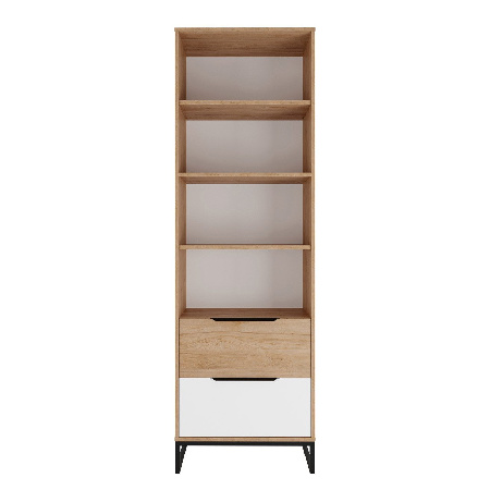 Regál je ideální volbou pro ty, kteří hledají pohodlí a styl. Regál Irawadi R2SZ IA07 obohatí zařízení každé místnosti. vašemu oblíbenému čtení Dalším prvkem nábytku jsou dvě zásuvky, které vám umožní uspořádat drobné předměty nebo dokumenty. Provedení: Přední část a korpus: 16 mm silná dřevotříska, hrany: ABS (viditelné plochy), papír (neviditelné plochy), zadní stěna z 3 mm HDF desky, kovový rám s černou práškovou barvou, kovové úchyty, kuličkové ložiskové kluzáky.