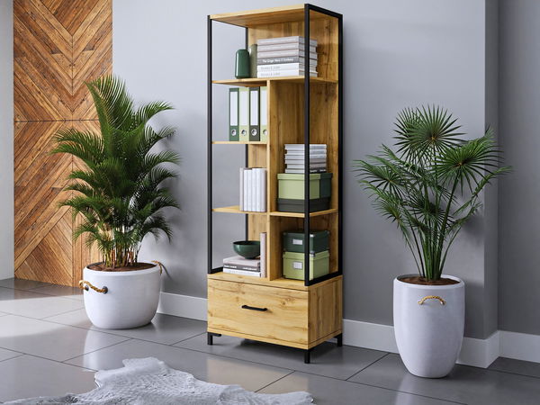 Elegantní a praktický, takový je regál Jael. S nádechem skandinávského minimalismu a drsného industriálního kovu přilákají nejeden pohled. Oceníte promyšleně rozdělený prostor poličkami a jednou zásuvkou.