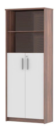 Vyšší regál Johan se skříňkou a dvěma otevřenými poličkami. Zařídíte ním jakoukoli pracovnu nebo kancelář. Poskytne vám dostatek úložného prostoru. Regál je v pěkném provedení švestka v kombinaci s bílou.