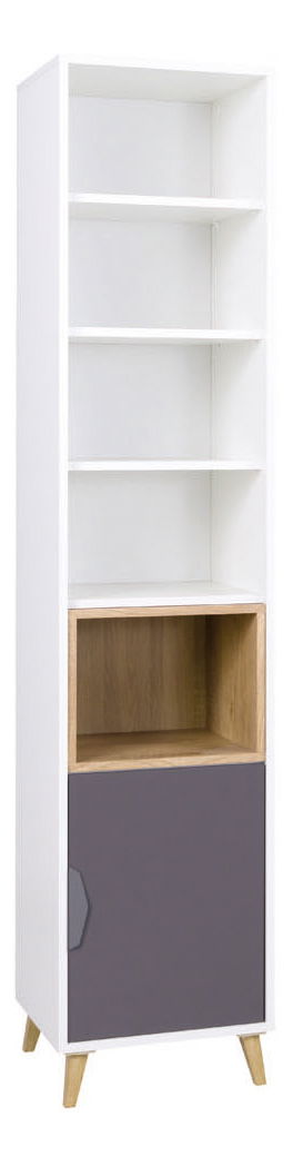 Regál Juna 4 (bílá + grafit + šedá + dub lefkas)