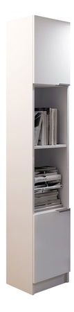 ZobrazitUniverzální regál Keyla R1 je dostupný ve více barevných variantách, díky čemuž si ji snadněji sladíte s představou místnosti. Regál se bude skvěle hodit do obývacího pokoje, ložnice nebo i koupelny. Jeho horní a spodní část tvoří uzavřené skříňky, střední část tvoří otevřené police, např. na knihy. Celková výška regálu je 183 cm a šířka 32 cm - díky čemuž je jeho vystavení v menších místnostech mnohem jednodušší. Ozdobným prvkem regálu jsou hliníkové úchyty.