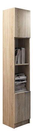 Univerzální regál Keyla R1 je dostupný ve více barevných variantách, díky čemuž si ji snadněji sladíte s představou místnosti. Regál se bude skvěle hodit do obývacího pokoje, ložnice nebo i koupelny. Jeho horní a spodní část tvoří uzavřené skříňky, střední část tvoří otevřené police, např. na knihy. Celková výška regálu je 183 cm a šířka 32 cm - díky čemuž je jeho vystavení v menších místnostech mnohem jednodušší. Ozdobným prvkem regálu jsou hliníkové úchyty.