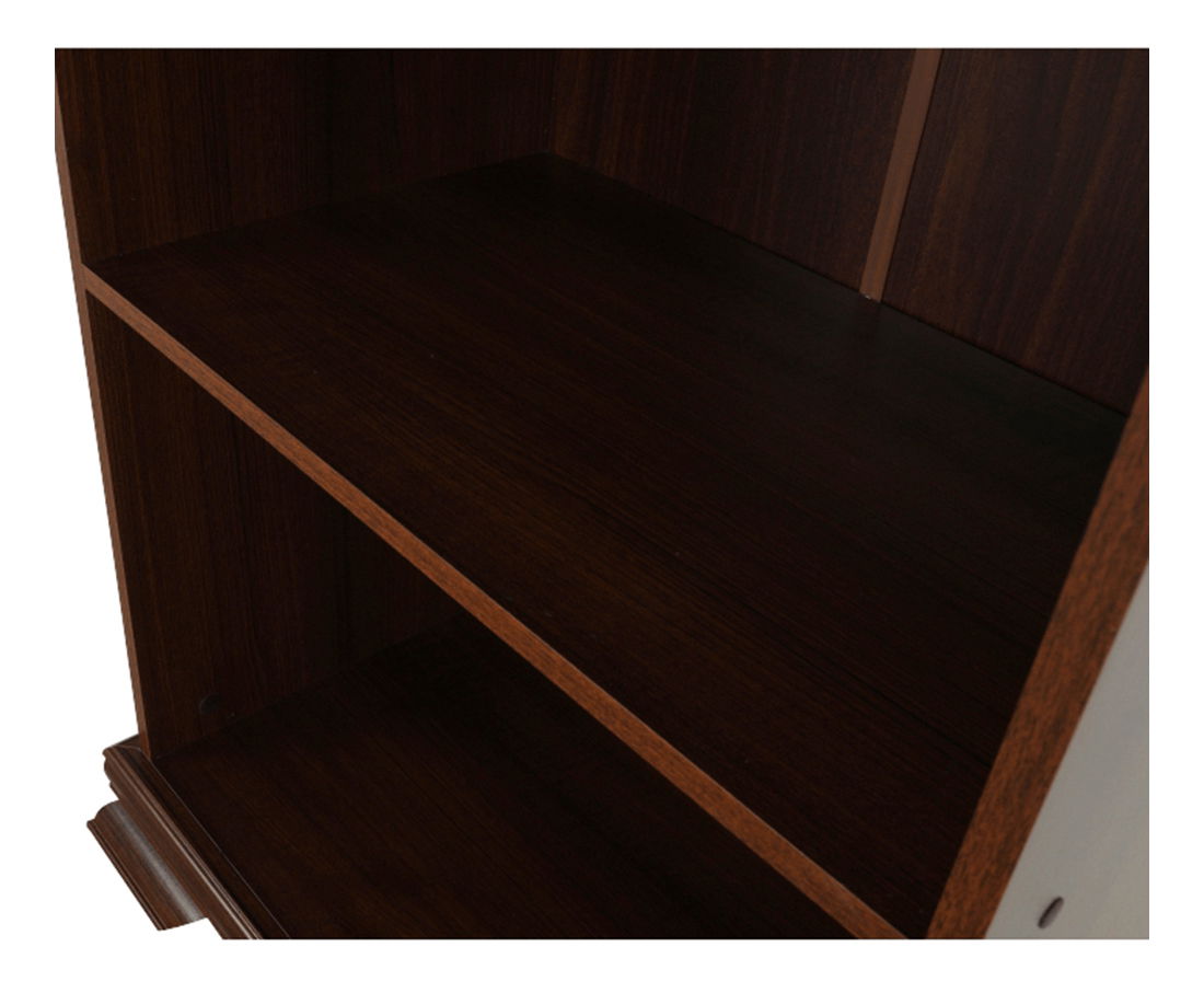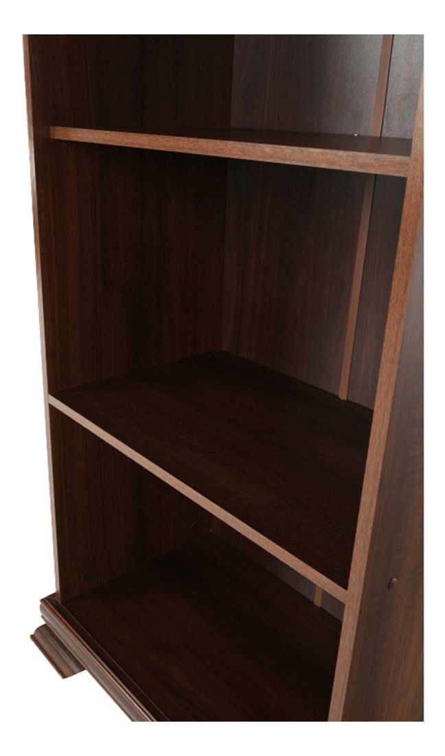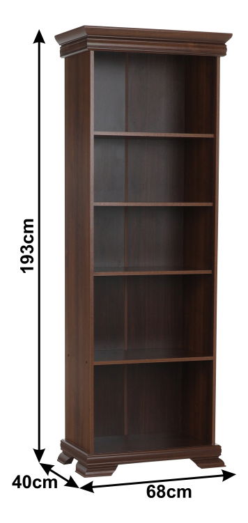 Vysoký otevřený regál Kraz rustikálního stylu se čtyřmi policemi potěší všechny, kteří mají rádi rustikální styl a chtěli by si takto zařídit domácnost. Má ozdobné vyřezávané nožičky a lišty. Je dodáván v barevném provedení Samoa king.