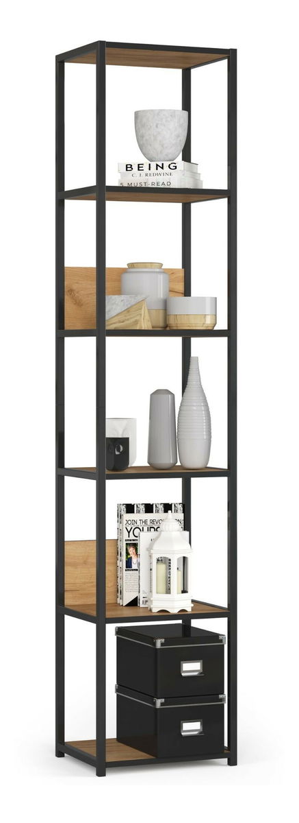ZobrazitKovový loftový regál Loriana je praktický a moderní kus nábytku, který dobře poslouží v obýváku i kanceláři. Regál disponuje 6 policemi, které jsou vyrobeny z laminované desky o tloušťce 16 mm. Jedná se o materiál s vysokou odolností proti oděru. Hrany jsou navíc chráněny ABS lemováním, díky kterým bude nábytek vždy vypadat dobře i po velmi intenzivním každodenním používání. Na regál můžete umístit předměty, které chcete vystavit nebo je máte jednoduše po ruce. Dostupný iv jiných barevných provedeních.