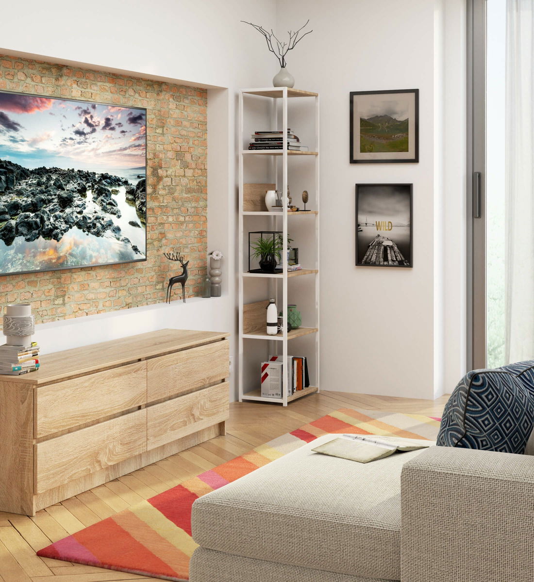 Regál Loriana II (bílá + dub sonoma)