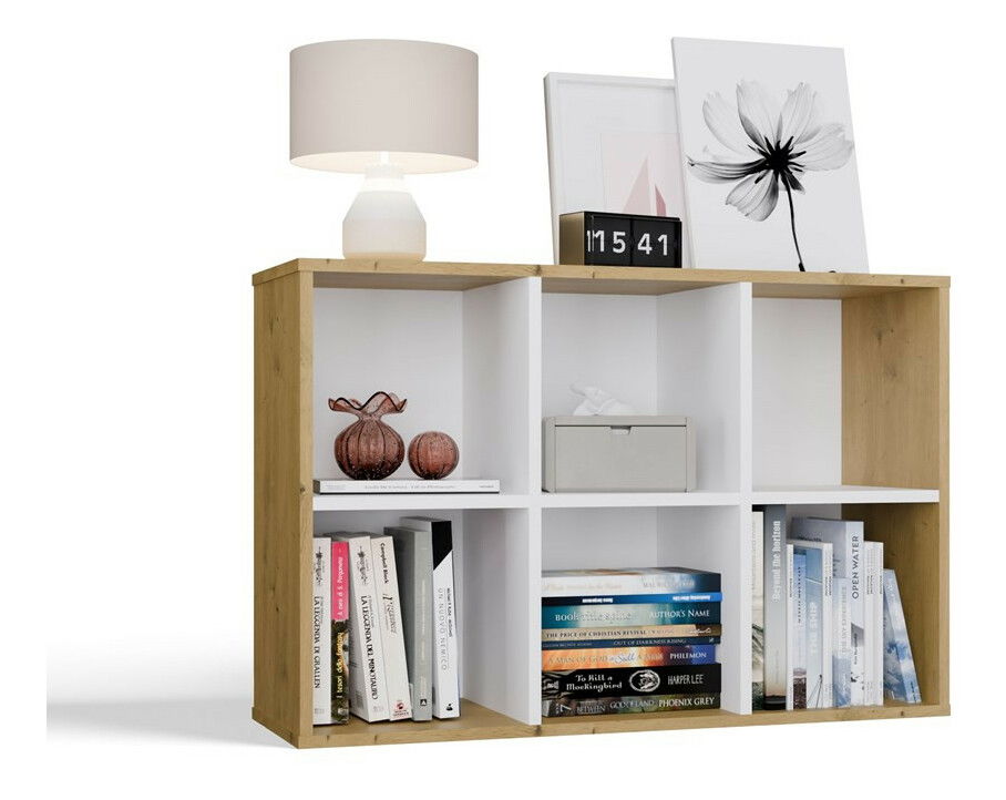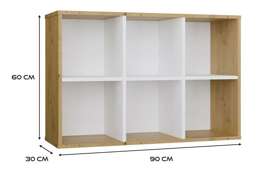 Regál Metros 1 je ideálním řešením pro uskladnění knih, hraček a dekorací, přičemž jeho moderní design v kombinaci barev dub artisan a bílá skvěle zapadne do jakéhokoli interiéru. S otevřenou konstrukcí umožňuje snadný přístup k uskladněným předmětům, což z něj činí praktický a funkční kus nábytku. Vyrobený z kvalitní laminované dřevotřísky, regál nabízí dostatek prostoru pro organizaci a je snadno montovatelný, což oceníte při jeho instalaci. Tento regál je skvělou volbou pro každého, kdo hledá spojení estetiky a praktičnosti.