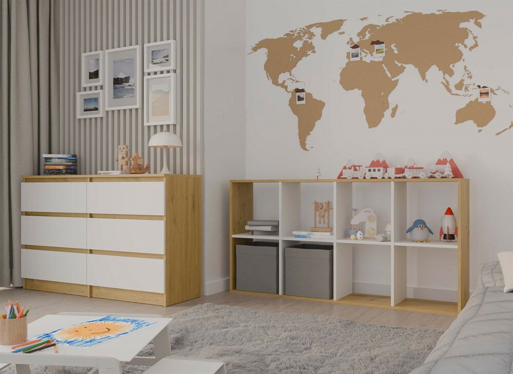 ZobrazitRegál Metros 4 je ideálním řešením pro každý moderní interiér, kde se potýká funkčnost s estetikou. S jeho kombinací barev dub artisan a bílá se stává elegantním doplňkem do obývacího pokoje, kanceláře nebo dětského pokoje. Tento otevřený regál nabízí dostatek prostoru pro uskladnění knih, hraček a dokumentů, přičemž jeho 8 polic zajišťuje přehlednost a organizaci. Vyroben z kvalitní laminované dřevotřísky, je nejen odolný, ale také snadno udržovatelný, což zaručuje dlouhou životnost a snadnou instalaci.