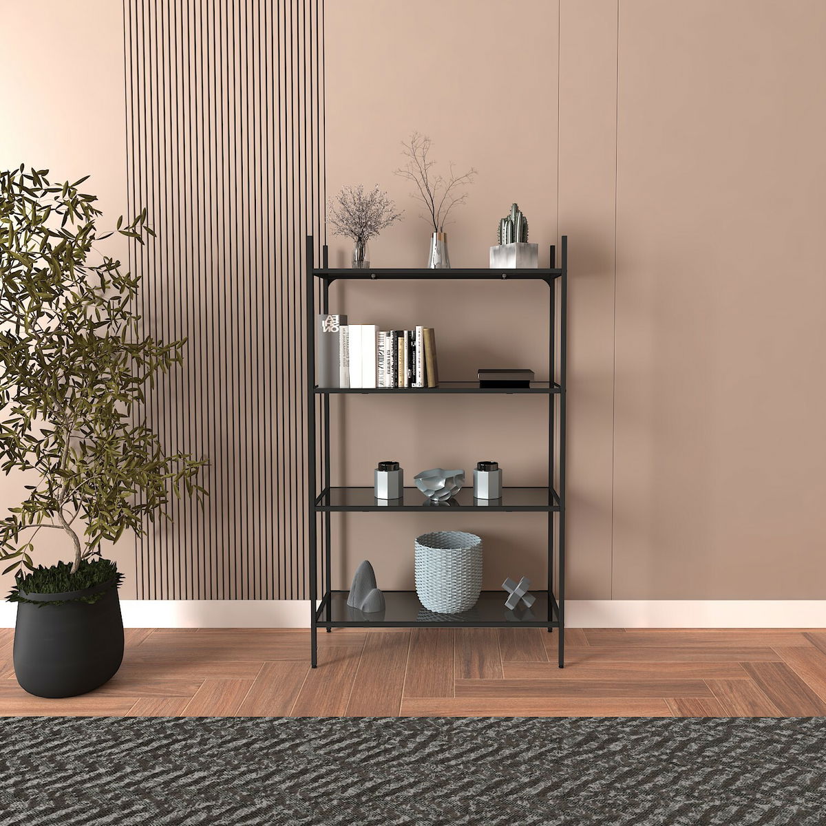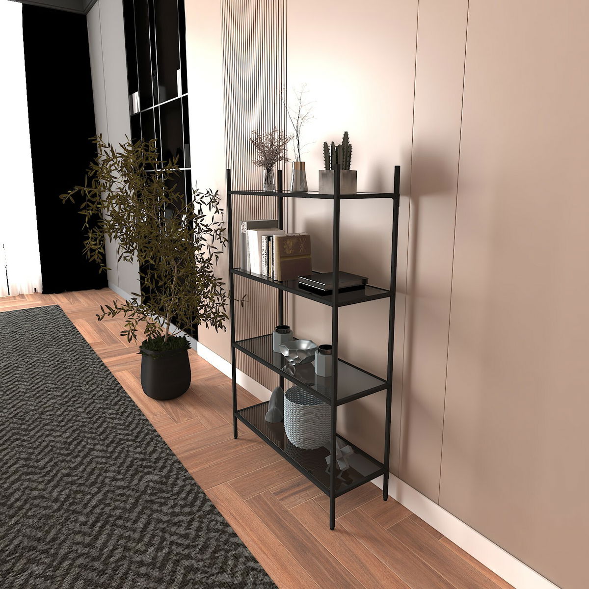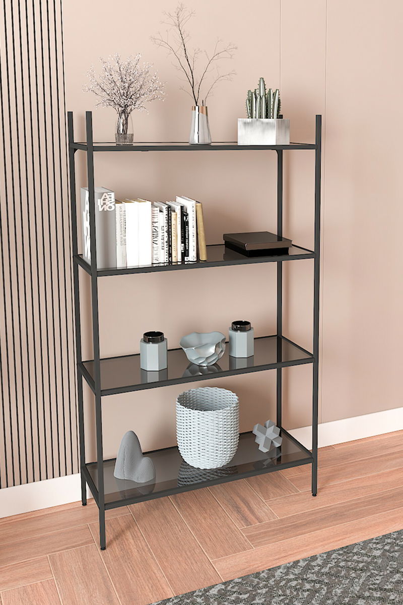 Regál Mortha (černá + kouřové sklo)
