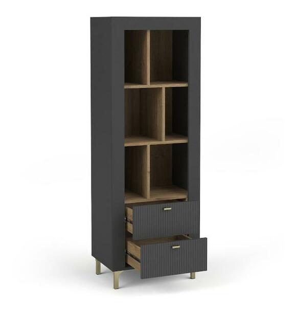 Regál Mossana MO4 (černá) je praktický kus nábytku, vhodný pro Váš domov. S výškou 168,6 cm a šířkou 59,9 cm poskytuje dostatek úložného prostoru pro vaše věci. Jeho hloubka 39,8 cm umožňuje efektivní využití prostoru. Regál kombinuje stylový design s funkčností, čímž se stane skvělým doplňkem do vašeho interiéru. Jeho moderní kombinace černých ploch a zlatých detailů přidává eleganci a zároveň se hodí k různým typům nábytku. Máte tak možnost vytvořit si vlastní styl. Regál Mossana MO4 (černá) je vyroben z kvalitního materiálu, což zaručuje dlouhou životnost tohoto produktu. S touto praktickou a stylovou volbou budete mít vždy všechno důležité věci na dosah ruky.