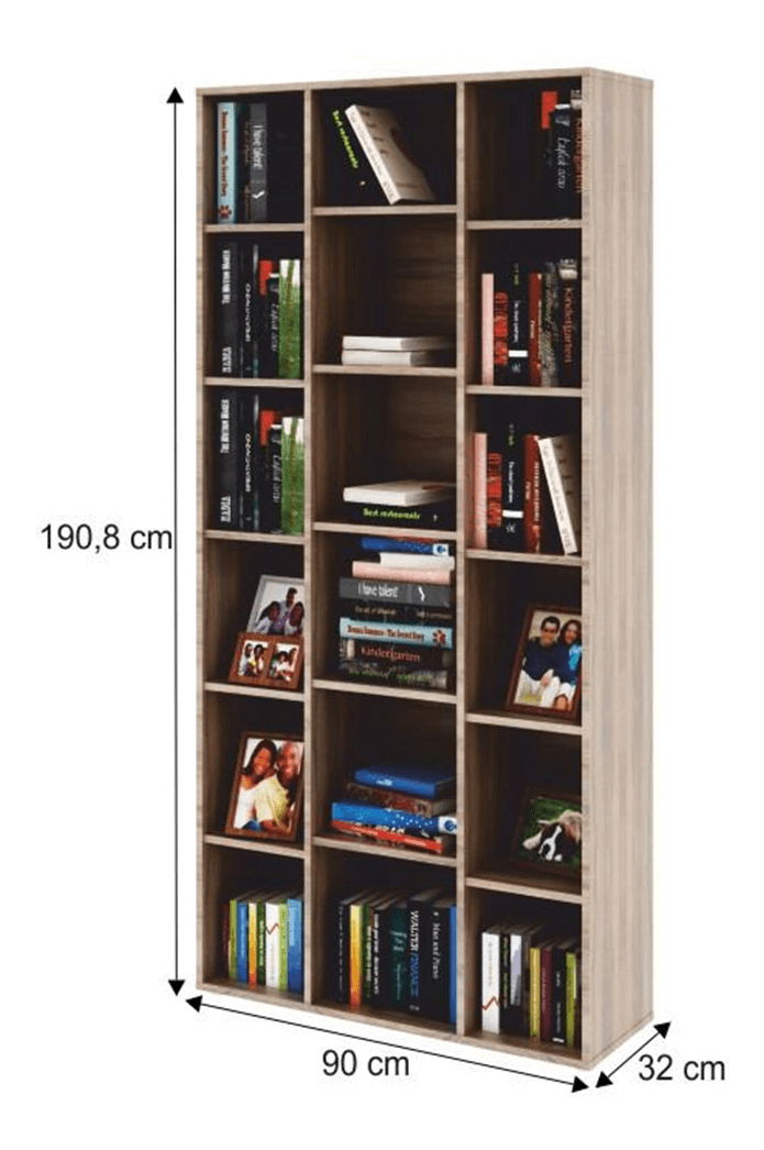 Vysoký regál s množstvím poliček, které Vám poslouží na dekorace, oblíbené knížky či jiné doplňky. Příjemné barevné provedení dub sonoma je vhodné do jakéhokoliv interiéru. Regál je nadstavbou nad menší skříňku.