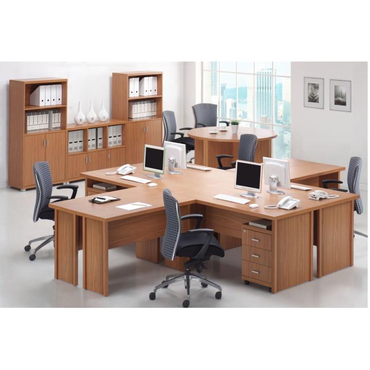 Víceúčelová sektorová sestava, která je vhodná na zařízení kanceláří, pracoven, studentských pokojů, obývacích prostor i školských učeben a zasedacích místností, prostě najde uplatnění snad ve všech prostorách, které potřebujete zařídit. Vyrobena je z kvalitního povrchově upraveného materiálu DTD/MDF tloušťky 18 mm. Povrchová úprava je v barvě dřeva třešeň americká. Nožičky a úchyty jsou imitací matného chromu. Lamelová hranovací páska stolových desek a bočních částí je 18+18 mm. Oscar obsahuje 22 kombinovatelných prvků, díky kterým si zařídíte prostor podle Vašich představ.