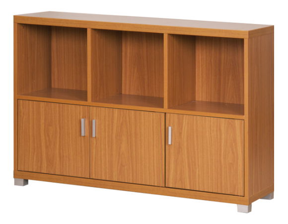 Regál Oshario FP-C 04 o výšce 85,2 cm a hloubce 38,1 cm je skvělým doplňkem do každého interiéru. Regál je rozdělen na dvě části, horní část má tři otevřené úložné prostory a dolní část má uzavřené prostory s dvířky. Regál stojí na masivnějších kovových nožičkách, které dodávají pevnost a stabilitu. Regál patří do sektorové sestavy Oscar, která je vhodná pro různé místnosti, jako jsou kanceláře, pracovny, studentské pokoje, obývací prostory nebo školní učebny a zasedací místnosti. Sestava je vyrobena z kvalitního materiálu DTD/MDF tloušťky 18 mm a má povrchovou úpravu v barvě dřeva třešeň americká. Nožičky a úchyty jsou imitací matného chromu. Lamelová hranovací páska stolových desek a bočních částí je 18+18 mm. Oscar obsahuje 22 kombinovatelných prvků, což umožňuje zařídit prostor dle vlastních představ. Regál Oshario FP-C 04 je dodáván v demontu.
