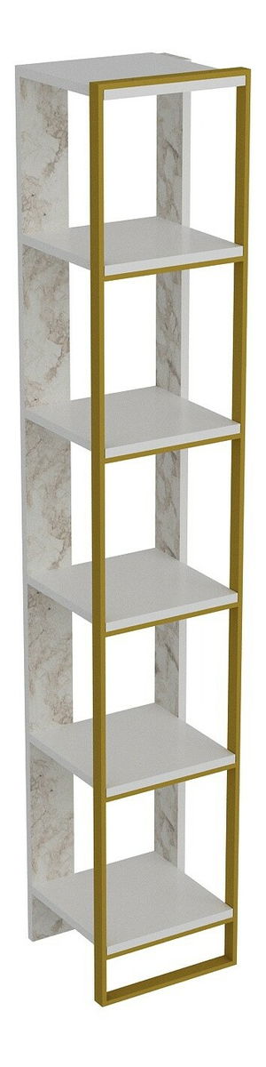 Regál Poppy (Zlatá + Bílá) výška 178 cm, šířka 32 cm, hloubka 31 cm. Tento regál je ideálním doplňkem pro váš domov. S jeho moderním designem v kombinaci zlaté a bílou barvou přinese do vašeho interiéru elegantní a stylový vzhled. Jeho dostatečná výška a šířka umožňuje uspořádání a uskladnění vašich věcí a příslušenství. S jeho pevnou konstrukcí a kvalitními materiály je regál odolný a dlouhodobě vydrží. Využijte jeho praktické police a vytvořte si pořádek ve svém domově s regálem Poppy.