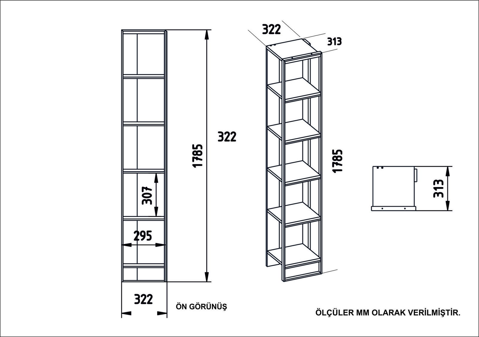 rozměry knihovny: šířka: 32,2 cm výška: 178,5 cm hloubka: 31,3 cm
