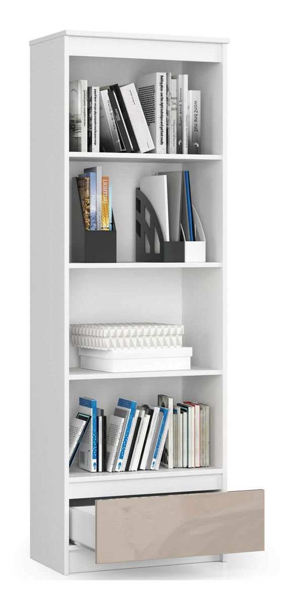 ZobrazitRegál Radha je ideální pro moderní kancelář, obývací pokoj či ložnici. Regál se vyznačuje kompaktním, ekonomickým designem. Jelikož je úzký, nezabere mnoho místa. Regál působí moderně a elegantně, ale to nejsou jeho jediné přednosti. Důležitým rozlišovacím znakem regálu je jeho funkčnost. Vybaven 4 velkými policemi a šuplíkem poskytuje bohatý úložný prostor. Skvěle se na něm budou vyjímat knihy, krabice se suvenýry z cest či kancelářské pořadače. Do zásuvky se pohodlně vejdou domácí či firemní pomůcky. Regál je atraktivní a praktický kus nábytku a vyznačuje se nejvyššími kvalitativními standardy. Regál je vyroben z laminované desky odolné vůči oděru. Zásuvka se pohybuje na kovových válečkových vodítkách s posuvným zámkem. Hrany pokryté ABS hranami zajišťují vysokou ochranu proti poškození. Dostupný ve více barevných provedeních.