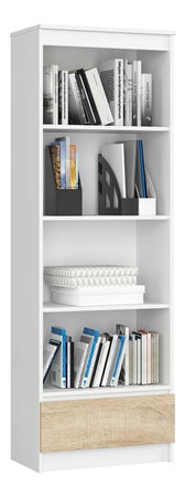 Regál Radha je ideálním řešením pro uspořádání a uložení vašich věcí. S výškou 180 cm, šířkou 60 cm a hloubkou 35 cm poskytuje dostatečný prostor pro uložení knih, dekorací, oblečení nebo dalších předmětů. Jeho elegantní design v kombinaci bílou a dubovou barvou sonoma přinese do vašeho interiéru moderní a stylový vzhled. Regál Radha je vyroben z kvalitních materiálů, což zaručuje jeho pevnost a dlouhou životnost. S tímto regálem si můžete jednoduše a prakticky organizovat svůj prostor a užívat si uklizený a vkusně zařízený domov.