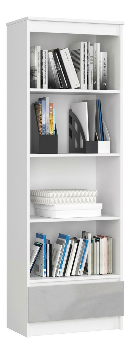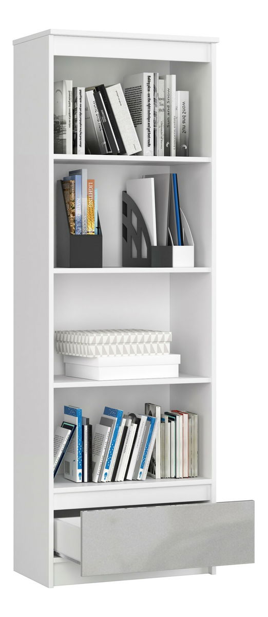 ZobrazitRegál Radha je ideální pro moderní kancelář, obývací pokoj či ložnici. Regál se vyznačuje kompaktním, ekonomickým designem. Jelikož je úzký, nezabere mnoho místa. Regál působí moderně a elegantně, ale to nejsou jeho jediné přednosti. Důležitým rozlišovacím znakem regálu je jeho funkčnost. Vybaven 4 velkými policemi a šuplíkem poskytuje bohatý úložný prostor. Skvěle se na něm budou vyjímat knihy, krabice se suvenýry z cest či kancelářské pořadače. Do zásuvky se pohodlně vejdou domácí či firemní pomůcky. Regál je atraktivní a praktický kus nábytku a vyznačuje se nejvyššími kvalitativními standardy. Regál je vyroben z laminované desky odolné vůči oděru. Zásuvka se pohybuje na kovových válečkových vodítkách s posuvným zámkem. Hrany pokryté ABS hranami zajišťují vysokou ochranu proti poškození. Dostupný ve více barevných provedeních.