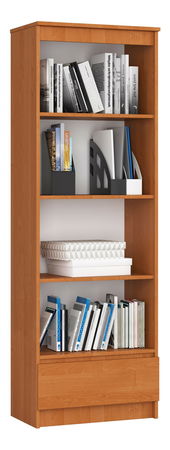 Regál Radha je ideální pro moderní kancelář, obývací pokoj či ložnici. Regál se vyznačuje kompaktním, ekonomickým designem. Jelikož je úzký, nezabere mnoho místa. Regál působí moderně a elegantně, ale to nejsou jeho jediné přednosti. Důležitým rozlišovacím znakem regálu je jeho funkčnost. Vybaven 4 velkými policemi a šuplíkem poskytuje bohatý úložný prostor. Skvěle se na něm budou vyjímat knihy, krabice se suvenýry z cest či kancelářské pořadače. Do zásuvky se pohodlně vejdou domácí či firemní pomůcky. Regál je atraktivní a praktický kus nábytku a vyznačuje se nejvyššími kvalitativními standardy. Regál je vyroben z laminované desky odolné vůči oděru. Zásuvka se pohybuje na kovových válečkových vodítkách s posuvným zámkem. Hrany pokryté ABS hranami zajišťují vysokou ochranu proti poškození. Dostupný ve více barevných provedeních.