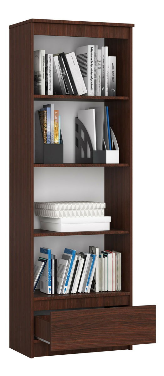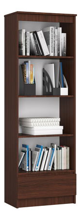 ZobrazitRegál Radha je ideální pro moderní kancelář, obývací pokoj či ložnici. Regál se vyznačuje kompaktním, ekonomickým designem. Jelikož je úzký, nezabere mnoho místa. Regál působí moderně a elegantně, ale to nejsou jeho jediné přednosti. Důležitým rozlišovacím znakem regálu je jeho funkčnost. Vybaven 4 velkými policemi a šuplíkem poskytuje bohatý úložný prostor. Skvěle se na něm budou vyjímat knihy, krabice se suvenýry z cest či kancelářské pořadače. Do zásuvky se pohodlně vejdou domácí či firemní pomůcky. Regál je atraktivní a praktický kus nábytku a vyznačuje se nejvyššími kvalitativními standardy. Regál je vyroben z laminované desky odolné vůči oděru. Zásuvka se pohybuje na kovových válečkových vodítkách s posuvným zámkem. Hrany pokryté ABS hranami zajišťují vysokou ochranu proti poškození. Dostupný ve více barevných provedeních.