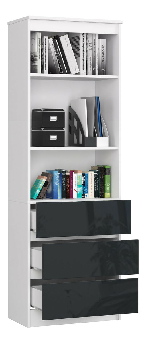 ZobrazitKancelářský regál Ravindra se 3 zásuvkami a 2 policemi je praktickým a funkčním vybavením pro vybavení jakéhokoli pracovního prostoru. Využití najde nejen v kanceláři, ale i doma, neboť šířka polic a zásuvek a jejich optimální počet umožňuje odkládání knih, dokumentů a jiných drobností potřebných v každodenním životě. Kancelářský regál s hranami pokrytými ABS hranou je vyroben z laminované desky a je odolný proti mechanickému poškození a oděru, takže i při intenzivním používání vydrží výjimečně dlouho. Je vybaven výškově nastavitelnými policemi, což umožňuje umístit na ně také příslušenství různých velikostí. Válečková vodítka GTV v zásuvkách s posuvným zámkem zaručují snadné každodenní používání.