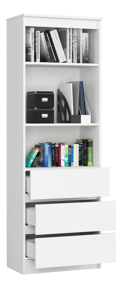 Kancelářský regál Ravindra se 3 zásuvkami a 2 policemi je praktickým a funkčním vybavením pro vybavení jakéhokoli pracovního prostoru. Využití najde nejen v kanceláři, ale i doma, neboť šířka polic a zásuvek a jejich optimální počet umožňuje odkládání knih, dokumentů a jiných drobností potřebných v každodenním životě. Kancelářský regál s hranami pokrytými ABS hranou je vyroben z laminované desky a je odolný proti mechanickému poškození a oděru, takže i při intenzivním používání vydrží výjimečně dlouho. Je vybaven výškově nastavitelnými policemi, což umožňuje umístit na ně také příslušenství různých velikostí. Válečková vodítka GTV v zásuvkách s posuvným zámkem zaručují snadné každodenní používání.