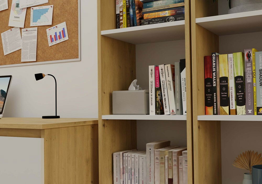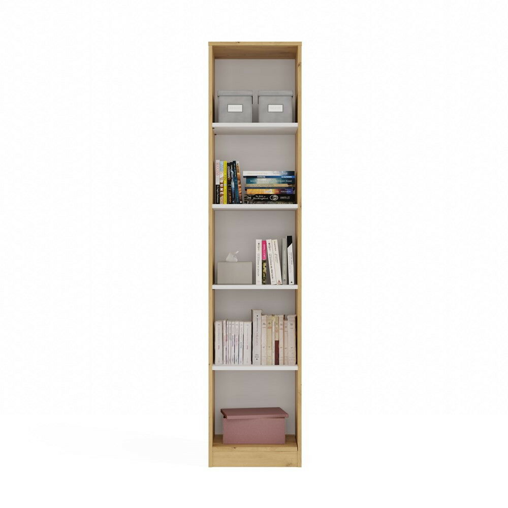 Regál Refarencios 2 je ideálním řešením pro všechny, kdo hledají kombinaci stylu a funkčnosti. S jeho moderním designem v odstínu dub artisan a bílé barvě se skvěle hodí do různých interiérů, ať už jde o kancelář, obývací pokoj nebo dětský pokoj. Tento regál nabízí pět prostorných polic, které jsou ideální pro uskladnění knih, dokumentů a dekorací. Díky odolné povrchové úpravě je lehce udržovatelný a jeho stabilní konstrukce zaručuje dlouhou životnost. Regál Refarencios 2 je praktickým a elegantním doplňkem do vašeho domova.