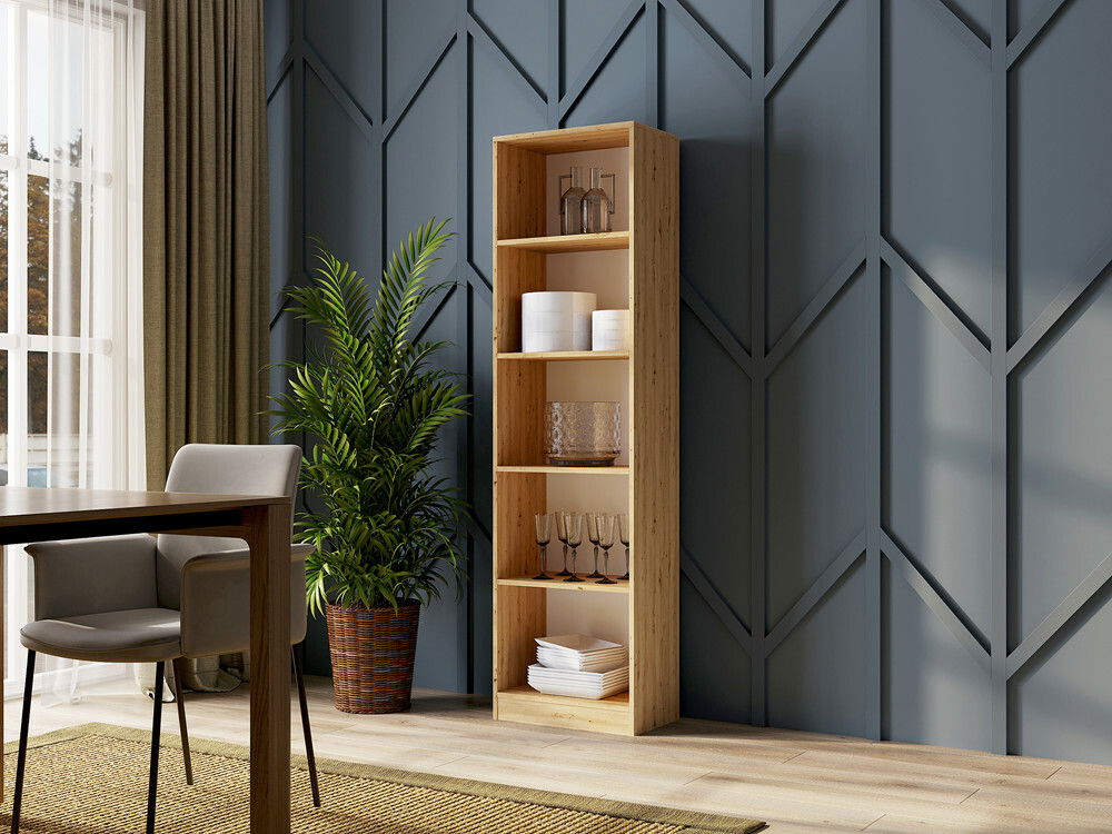 Regál Refarencios 5 je ideálním řešením pro uskladnění knih, hraček a dokumentů, přičemž jeho elegantní design v odstínu dub artisan dodává každému interiéru nádech modernosti. Vyrobený z kvalitní laminované dřevotřísky, tento regál je nejen esteticky příjemný, ale také mimořádně odolný a praktický. S rozměry 50 cm na šířku, 30 cm na hloubku a 182 cm na výšku nabízí dostatek prostoru pro organizaci vašich věcí. Jeho snadná údržba a montáž dělají z tohoto regálu skvělý doplněk do každého domova či kanceláře.
