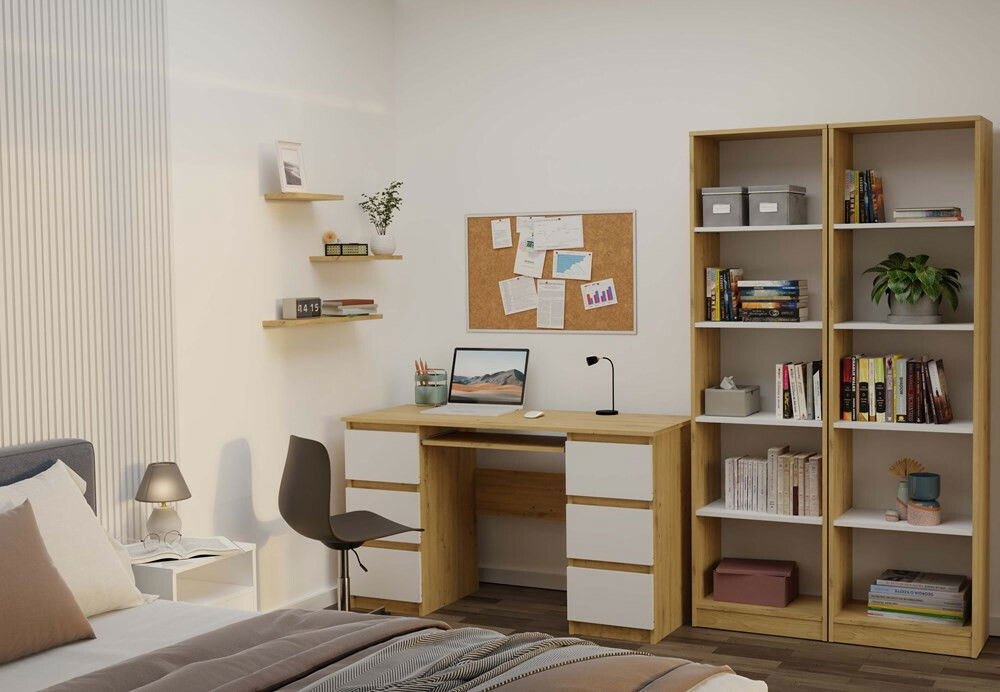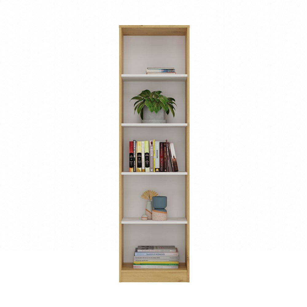 ZobrazitRegál Refarencios 5 je ideálním řešením pro ty, kdo hledají kombinaci stylu a funkčnosti. S jeho moderním designem v odstínu dub artisan a bílé barvě se skvěle hodí do různých interiérů, ať už jde o kancelář, obývací pokoj nebo dětský pokoj. Tento regál nabízí pět prostorných polic, které jsou ideální pro uskladnění knih, dekorací nebo dokumentů. Díky odolné povrchové úpravě je snadný na údržbu a jeho stabilní konstrukce zaručuje dlouhou životnost. Je to praktický a elegantní doplněk do každého domova.