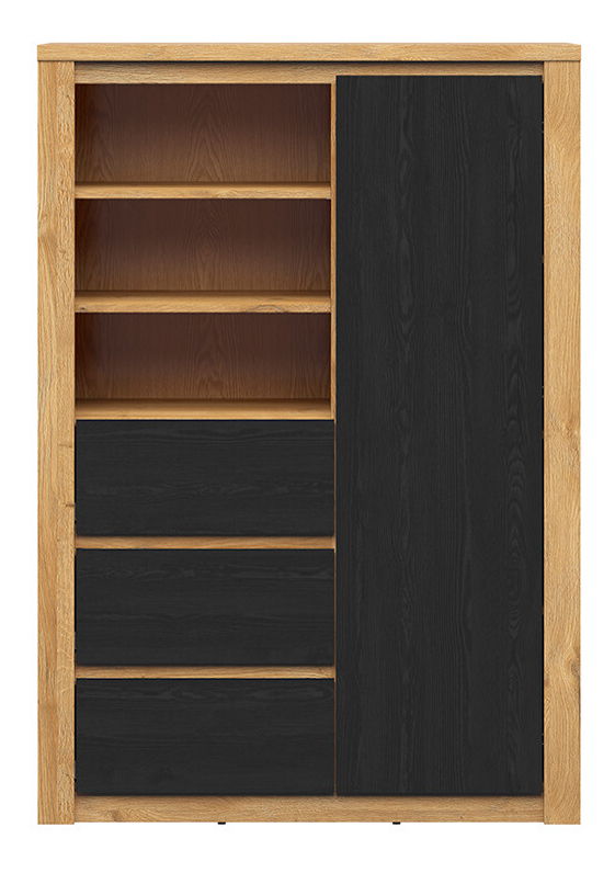 Přidejte vašemu domovu eleganci s regálem REG1D3S z exkluzivní kolekce Walton. Tento regál poskytuje trojici otevřených polic, tři praktické zásuvky a prostornou uzavřenou skříňku. S tichým a hladkým mechanismem zavírání poskytuje náš regál nejen funkční efektivitu, ale také sofistikovaný vzhled, který přinese do vašeho domova jedinečný dotek moderního designu. Dodáván v demontu.