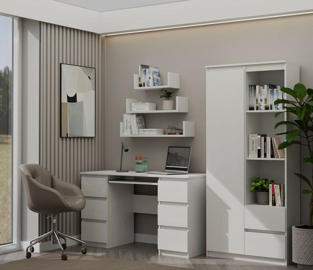 ZobrazitRegál Respeto 2 je moderní a funkční nábytek, který se skvěle hodí do obývacího pokoje, kanceláře nebo studentského pokoje. S jeho minimalistickou konstrukcí a elegantním bílým matným povrchem nabízí nejen praktické úložné řešení, ale také estetický zážitek. Se 7 praktickými poličkami a dvěma šuplíky poskytuje dostatek prostoru pro knihy, dekorace či dokumenty. Vyrobeno z kvalitní laminované desky, je odolný vůči poškrábání a vlhkosti, což zaručuje jeho dlouhou životnost. Tento regál je ideálním doplňkem pro každého, kdo ocení kombinaci designu a funkčnosti.