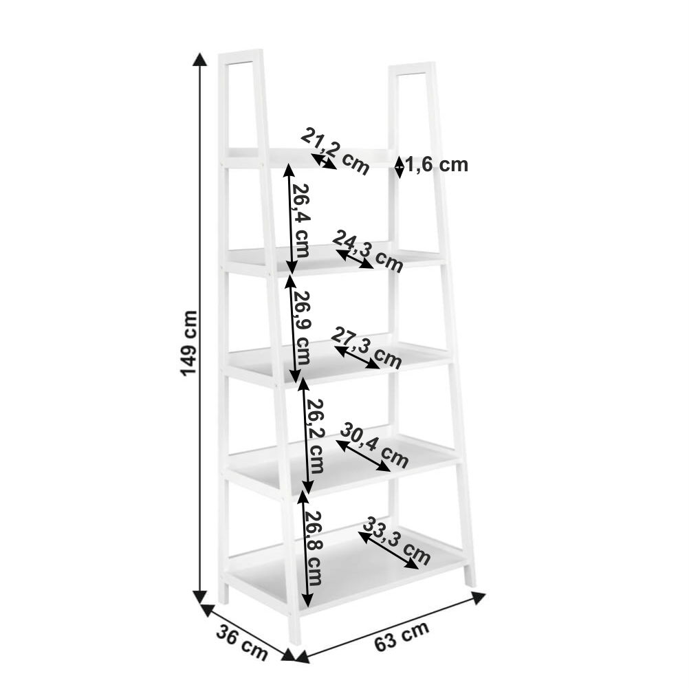 Pokud potřebujete rozšířit váš úložný prostor či efektivní a vkusně vyplnit prázdný prostor v domácnosti, vyberte si 5-policový regál Revlon. Vyrobený z MDF a lakovaného bambusu v bílém provedení. Regál doporučujeme připevnit ke stěně pro lepší stabilitu.