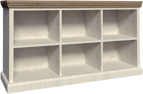 Zajímavý regál se šesti velkými policemi a masivní horní deskou