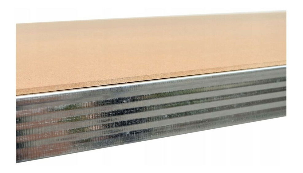 pozinkovaná ocel o tloušťce 0,65 mm a MDF deska o tloušťce 4 mm