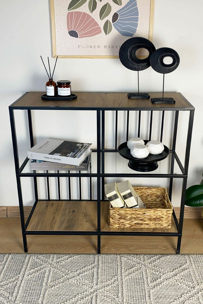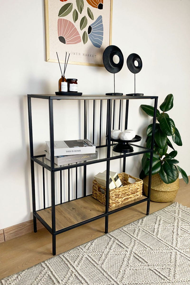 Regál Savoj (borovice atlantická + sklo)