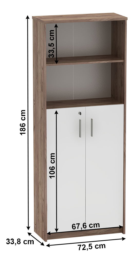 Tento minimalistický vysoký regál Hansa 2 NEW 10 vám nabízí široké možnosti úložného prostoru. Výrobek se skládá z uzamykatelné skříňky a vnějšího otevřeného prostoru rozděleného policí. Regál má výšku 186 cm, šířku 72,5 cm a hloubku 33,8 cm. Je vyroben v barvě kraft dunkel a bílá. Tento regál je ideální pro moderní kancelář nebo pracovnu. Může být také vhodným doplňkem do dětského pokoje, kde poskytne otevřený prostor pro knihy, hračky a krabice. Regál je dodán se spodním soklem. Uvnitř skříňky se nacházejí dvě policové desky, které poskytují ještě více úložného prostoru.
