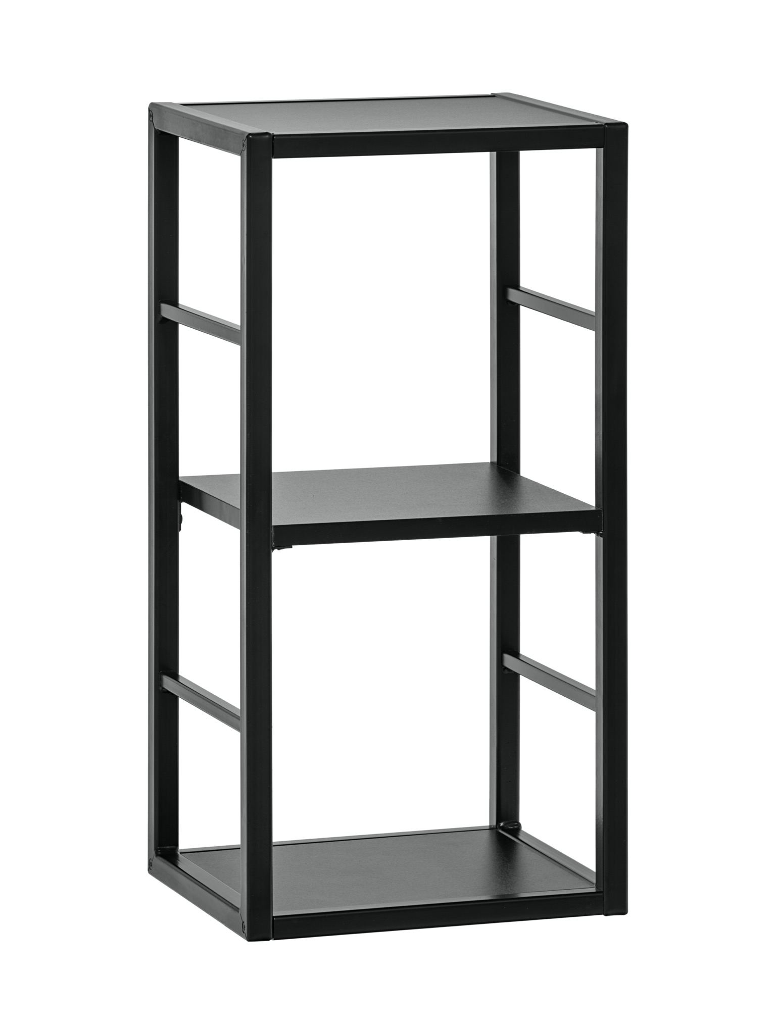 Nadčasový kovový regál řady Switch RM 4 v černé matné barvě. Úložný prostor je rozdělen do dvou částí. Regál je vhodné umístit do obývacího pokoje, pracovny či spíže.